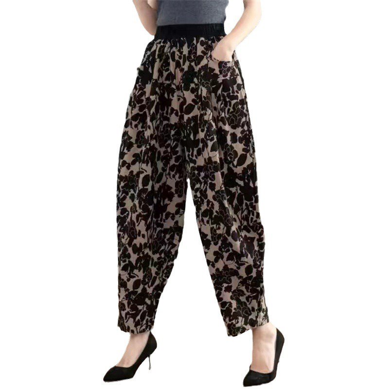 กางเกงฮาเร็มผ้าฝ้ายลินินทรงหลวมลำลองเก้าส่วน