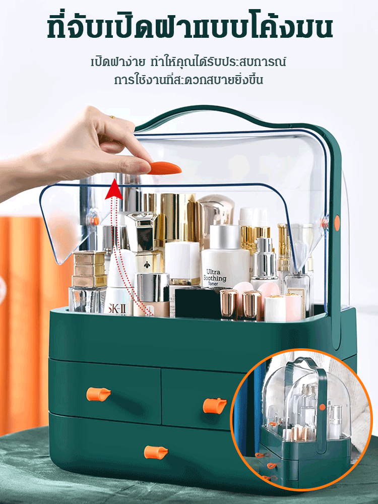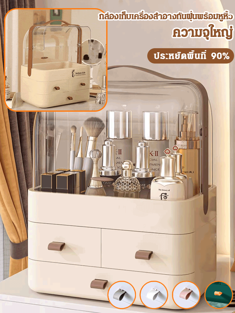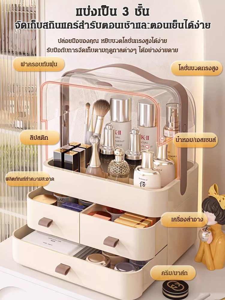 กล่องเก็บเครื่องสำอางกันฝุ่นแบบพกพา ความจุใหญ่ หรูหรา