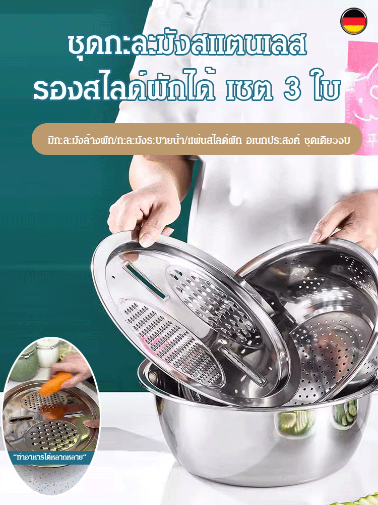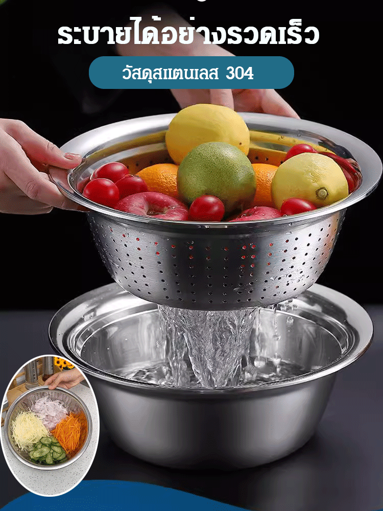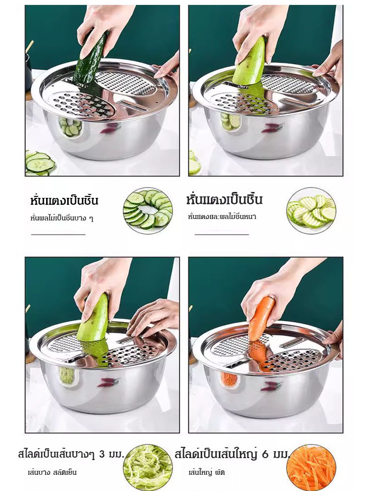 ชุดกะละมังสแตนเลส รองสไลด์ผักได้