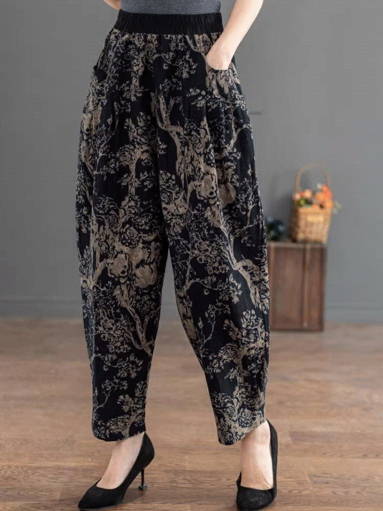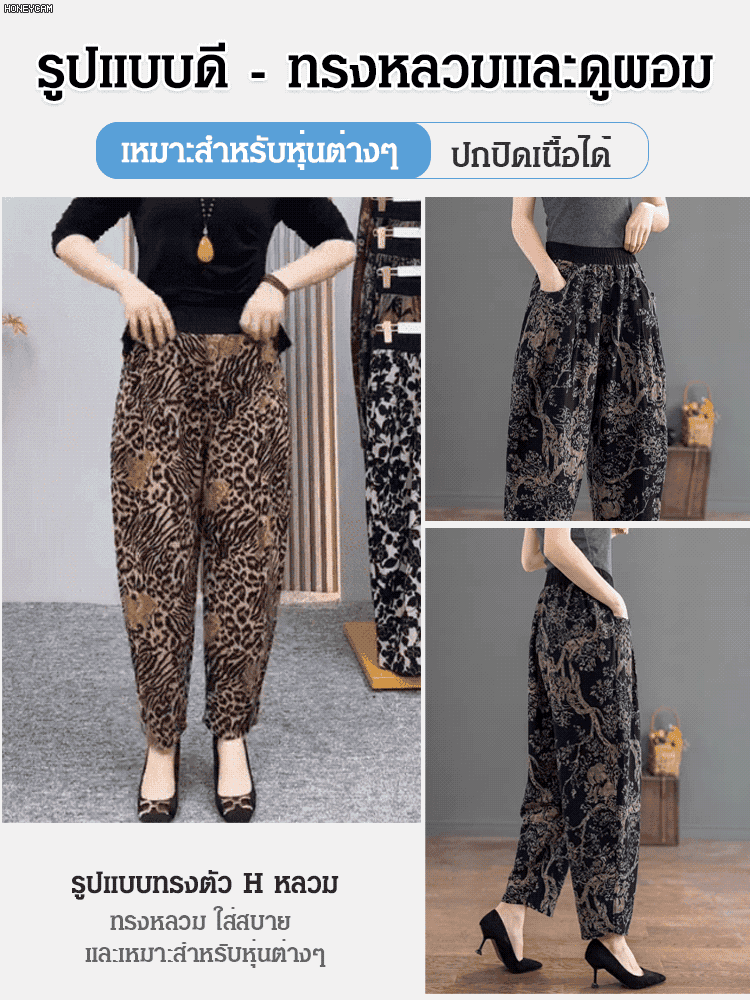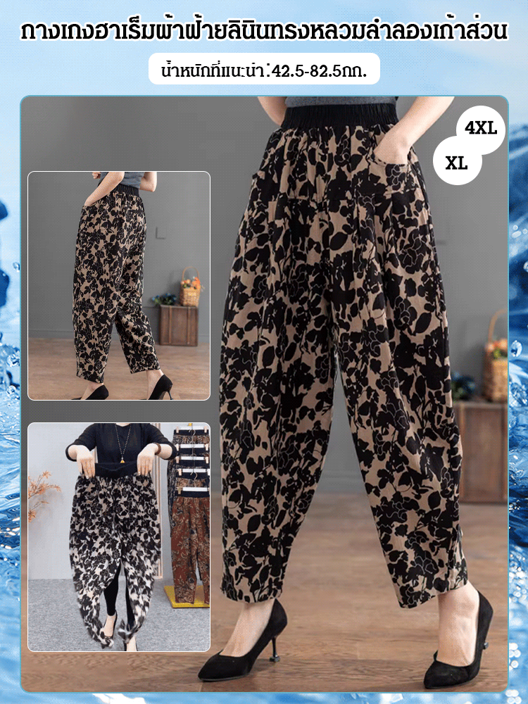 กางเกงฮาเร็มผ้าฝ้ายลินินทรงหลวมลำลองเก้าส่วน